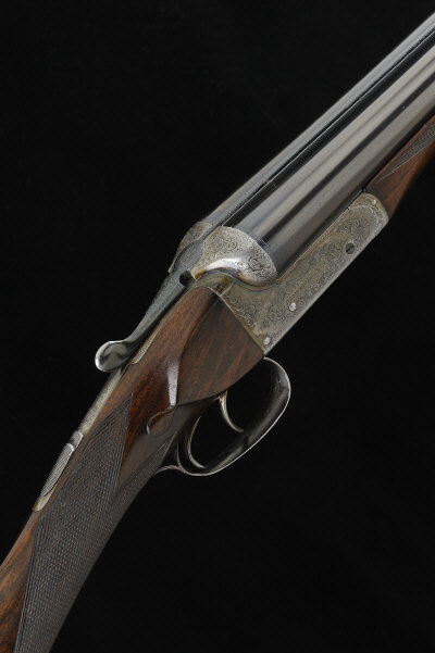ARMSTRONG & CO. A 12-BORE BOXLOCK EJECTOR GUN, NO. 43745 28-inch barrels with 2 1/2 chambers, about true cylinder and 3/4 choke borings, top extension, the frame and top lever with scroll engraving and retaining some original hardening colour, 14 1/4-inch figured stock with ribbed butt plate, 6lb. 8oz., nitro re-proof S2 |