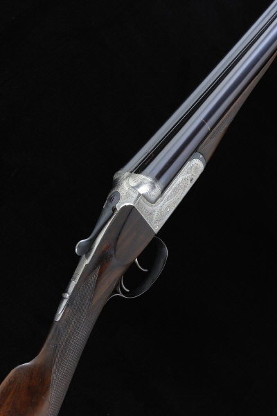 J. VENABLES & SON A 12-BORE BOXLOCK EJECTOR GUN, NO. 5810 26-inch sleeved barrels with 2 1/2-inch chambers, about 1/2 and full choke borings, the frame and top lever with scroll engraving, 14 1/2-inch figured stock including recoil pad, 6lb. 11oz., nitro proof S2 |
