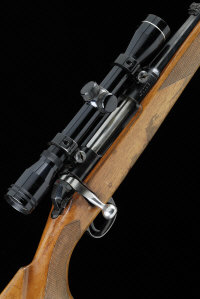 BSA A .270 BOLT-ACTION SPORTING RIFLE, NO. 8P6287 22-inch barrel with ramp fore sight and folding rear sight, the receiver mounted with a Tasco telescopic sight, magazine with hinged base plate, half length stock with pistol grip, cheekpiece and rubber recoil pad, 12 1/2-inch pull, 8lb. 2oz., nitro proof |