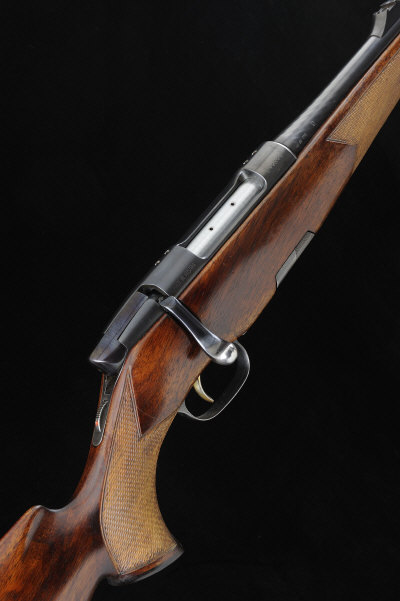 MANNLICHER A .243 "LUXUS" MODEL BOLT-ACTION SPORTING RIFLE, NO. 214344 23 1/2-inch barrel with ramp fore sight, rear sight blade removed, the receiver with tang safety, detachable box magazine, the half length stock with pistol grip, cheekpiece and rubber recoil pad, 14-inch pull, 7lb. 2oz.. Austrian nitro proof S1 |