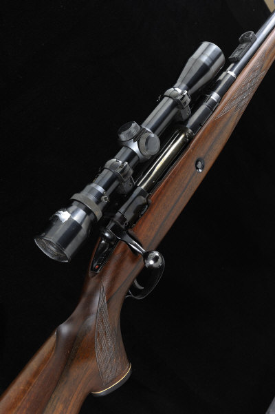 ANSCHUTZ A .270 BOLT-ACTION SPORTING RIFLE, NO. B395332 23-inch barrel with ramp fore sight, rear sight missing, the receiver mounted with a Weaver telescopic sight, bolt with tang safety, detachable box magazine, the half length stock with pistol grip and cheekpiece, 13 12-inch pull, butt plate broken, 8lb. 12oz., German nitro proof S1 |
