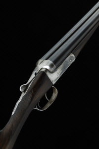 30-inch barrels with 2 1/2-inch chambers about true cylinder and 3/4 choke borings, the frame with border engraving and retaining traces of original hardening colour, 14 1/2-inch figured stock with ebonite butt plate, 6lb. 14oz., nitro proof