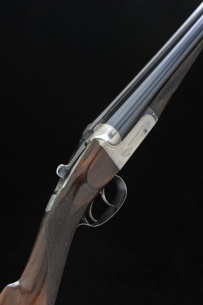 WEBLEY & SCOTT A 16-BORE MODEL 500 BOXLOCK EJECTOR GUN, NO. 113402 28-inch replacement barrels by William Ford, with 2 1/2-inch chambers, about 1/2 and 3/4 choke borings, top extension, the frame and top lever with border engraving, 15-inch figured stock including rubber recoil pad, cast-off for central vision, 6lb. 5oz., nitro re-proof S2 |