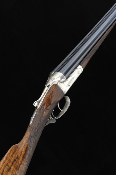 ROWLAND WATSON A 16-BORE BOXLOCK EJECTOR GUN, NO. 1804 28-inch barrels with 2 1/2-inch chambers, about 1/4 choke borings, crossbolt extension, the frame and gold numbered top lever with scroll engraving and retaining much of its nickel-plated finish, 14 1/2-inch highly figured stock including 1/2-inch extension and ribbed butt plate, 5lb. 12oz., nitro proof, rejointing recommended, ejectors require regulation S2 The maker confirms that the gun was built in 1901. |