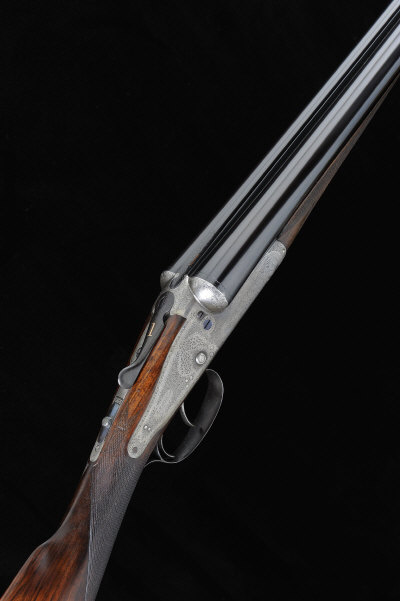 D. WALES A 12-BORE BACKLOCK NON-EJECTOR GUN, NO. 496 29-inch replacement barrels by another, with 2 3/4-inch chambers about 1/2 choke borings, doll's head extension, the rounded frame, back lock and gold numbered top lever with fine foliate scroll engraving and retaining traces of hardening colour, raised cocking indicators, 14 1/2-inch figured stock including 1-inch ebonite extension, 6lb. 15oz., recent nitro re-proof, bores pitted |