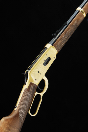 WINCHESTER A .30-30 COMMEMORATIVE "ANTLERED GAME" EDITION MODEL 94 LEVER ACTION CARBINE, NO. AG18155 20-inch barrel with adjustable rear sight, full length magazine tube, the gold washed frame with scenes of deer amidst scrollwork, 13 1/4-inch highly figured stock with inlet medallion and crescent butt plate, 6lb. 8oz., nitro proof, in its maker's factory carton