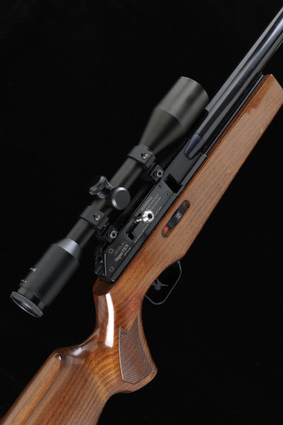 BSA A .22 "SUPERTEN" FAC AIR RIFLE, NO. DP10146 19-inch barrel with full length sound moderator, the receiver mounted with a 6x42 telescopic sight, half length stock with pistol grip cheekpiece and recoil pad, 14-inch pull, 8lb. 15oz., air bottle missing S1 |