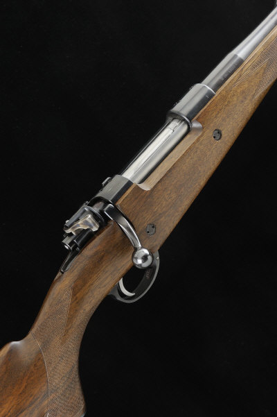 T. T. PROCTOR A .416 RIGBY BOLT-ACTION SPORTING RIFLE, NO. 138 25-inch barrel with ramp fore sight with folding moon bead, fixed raised rear sight, the receiver drilled for scope bases, bolt with side safety, magazine with hinged base plate, the half length well figured stock with pistol grip, cheekpiece and rubber recoil pad, 14 1/2-inch pull, sling eyes, 8lb. 14oz., nitro proof S1 The rifle appears little used and was one of the last rifles Trevor Proctor completed. |