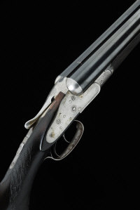 AN ENGLISH 12-BORE SIDELOCK EJECTOR GUN, NO. 7925 30-inch barrels with 2 1/2-inch chambers about improved cylinder and 3/4 choke borings, doll's head extension, the plain frame and back action bar locks retaining traces of hardening colour, 14 1/4-inch figured stock with pistol grip, 6lb. 15oz., nitro re-proof, fore-end loop loose, ejectors defective, canvas case |