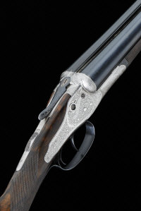 ALEX HENRY A 12-BORE SCOTT ACTION BACKLOCK NON-EJECTOR GUN, NO. 4911 27-inch sleeved barrels with 2 1/2-inch chambers about 1/4 and 3/4 choke borings, the rounded frame, backlocks and numbered top lever with fine scroll engraving, patent crystal indicators, 14 1/2-inch well figured stock, 6lb. 13oz., nitro proof |