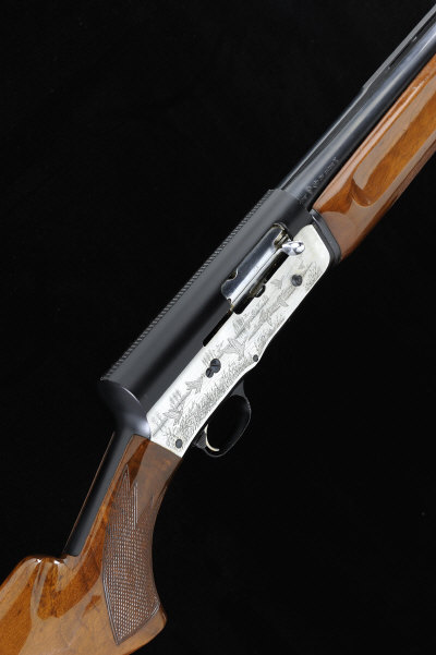 DAIWA A 12-BORE AUTO 5000 MODEL SELF-LOADING GUN, NO. P226393 28-inch barrel with 2 3/4-inch chamber, about 1/2 choke boring, machined ventilated rib, magazine with restricted capacity, the alloy receiver engraved with scenes of game and duck, 14-inch figured stock with pistol grip, 7lb. 2oz., nitro proof |