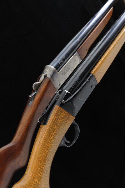 30-inch barrel with 2 3/4-inch chamber, about 1/2 choke boring, the plain alloy frame with top lever, black painted finish, 14-inch stock, 7lb. 2oz., nitro proof; together with a Webley & Scott 12-bore semi-hammerless single barrel gun, no. 75618, 30-inch barrel with 2 3/4-inch chamber, muzzle with adjustable choke, the frame retaining traces of hardening colour, 14 1/2-inch stock, 6lb. 2oz., nitro proof (2)