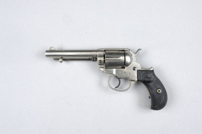 COLT A .38 "LIGHTNING" MODEL DOUBLE ACTION REVOLVER, NO. 78140 4 1/2-inch barrel with ejector rod, solid frame with loading gate and patent date to 1875, bird's head grips with rampant colt motif, retaining much nickel plated finish overall, black powder proof S5 This lot will not be available for viewing in London. It can be viewed by appointment at our office in West Sussex. |