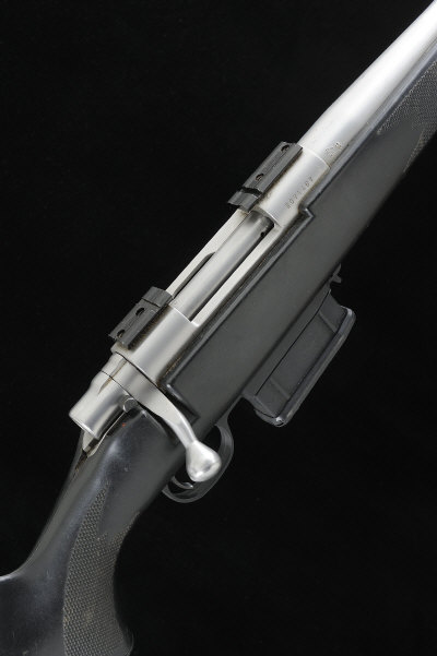 17 1/2-inch barrel fitted with a sound moderator, the receiver with Weaver scope bases, bolt with side safety, detachable box magazine, the half length stock with pistol grip, cheekpiece and rubber recoil pad, 13 1/2-inch pull, 8lb. 4oz., nitro proof