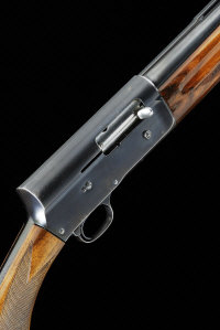 BROWNING A 12-BORE "A5" MODEL SELF-LOADING GUN, NO. 6569 28-inch barrel with 2 3/4-inch chamber, fitted with a poly-choke, adjustable muzzle brake, machined ventilated rib, restricted magazine capacity, 14 1/2-inch figured stock, 8lb. 5oz., Belgian nitro proof |