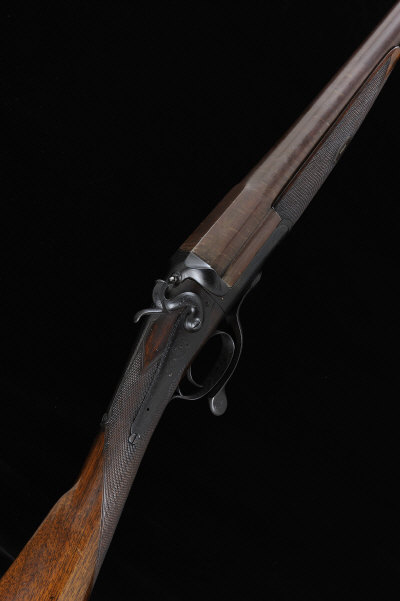 G. E. LEWIS AN 8-BORE SINGLE BARREL GUN, NO. 888 34 1/4-inch barrel with 3 1/4-inch chamber, about 1/4 choke boring, the blacked rounded frame, non-rebounding back lock and hammer with scroll engraving, 15-inch figured stock with steel butt plate, 7lb. 2oz., nitro proof S58 |
