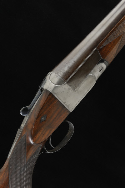 JOHN HARPER A 4-BORE SIDELOCK NON-EJECTOR SINGLE BARREL GUN, NO. 1679 40-inch damascus barrel with 4-inch chamber, about 1/2 choke boring, the frame, back action bar lock and top lever with border engraving, the maker's name signed within a scrolling banner, 14-inch figured stock with pistol grip, 12lb. 5oz., nitro re-proof, full length brassbound canvas case with John Rigby & Co label converted from a rifle case S58 |