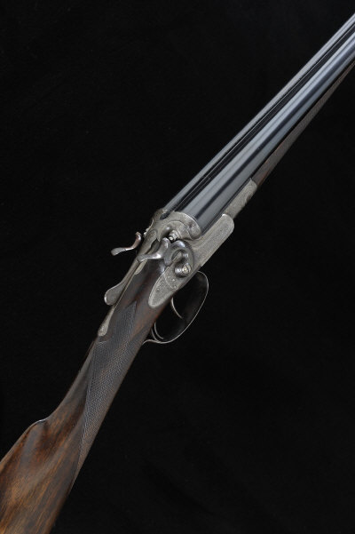 WILLIAM EVANS A SCARCE 28-BORE TOP LEVER HAMMER GUN, NO. 2083 27-inch sleeved barrels with 2 3/4-inch chambers, about 1/4 and 1/2 choke borings, doll's head extension, the frame, rebounding bar locks, hammers and top lever with fine scroll engraving and retaining some original hardening colour, the maker's name signed within a scrolling banner, 14-inch figured stock including well matched 2-inch extension, 5lb., nitro proof S2 The gun was sleeved and refurbished for sale by William Evans in 2007. |