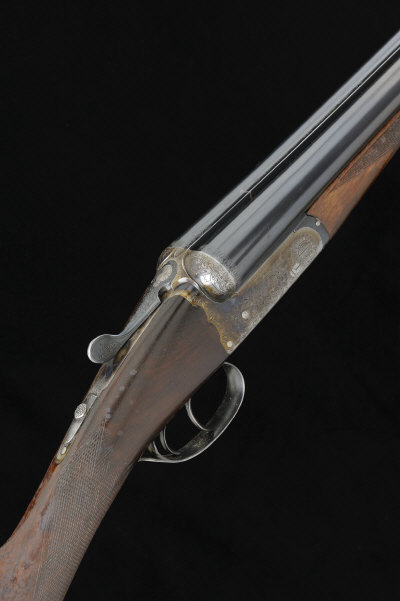 MIROKU A 12-BORE MODEL 550 BOXLOCK EJECTOR GUN, NO. 165041 28-inch chopper-lump barrels with 2 3/4-inch chambers, about 1/4 and slightly recessed improved cylinder borings, the scroll back frame and top lever with scroll engraving and retaining much original hardening colour, 14 1/4-inch figured stock including rubber recoil pad, 6lb. 11oz., nitro proof S2 |