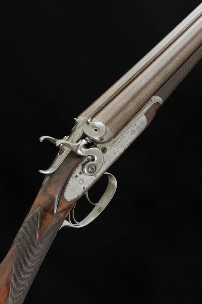 The gun incorporates the Powell patent lever of 1864 and strikers of 1869 and was built circa 1881.