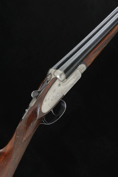 ARRIETA A 20-BORE GUNMARK CROWN SABEL MODEL SIDELOCK EJECTOR GUN, NO. 34679 27-inch chopper-lump barrels with 2 3/4-inch chambers, about 3/8 and 3/4 choke borings, the frame, locks and top lever with border engraving, each lock engraved with a crown, 14 3/4-inch figured stock, 5lb. 15oz., Spanish nitro proof S2 |