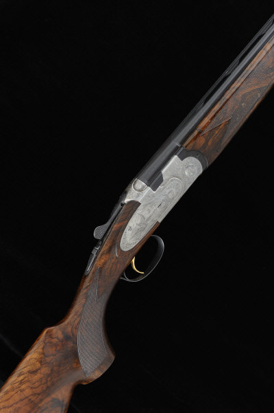 P. BERETTA A 20-BORE 687 EELL MODEL SINGLE TRIGGER OVER AND UNDER EJECTOR GUN, NO. M70399B (DIAMOND PIGEON) 29 1/2-inch monobloc barrels with 3-inch chambers, with interchangeable choke tubes, machined ventilated rib, the frame, side plates and top lever with game scene engraving surrounded by scrollwork, selective single trigger, 14 1/2-inch highly figured stock with pistol grip, broken and well repaired through the hand, 6lb. 5oz., Italian nitro proof, in its maker's case S2 |