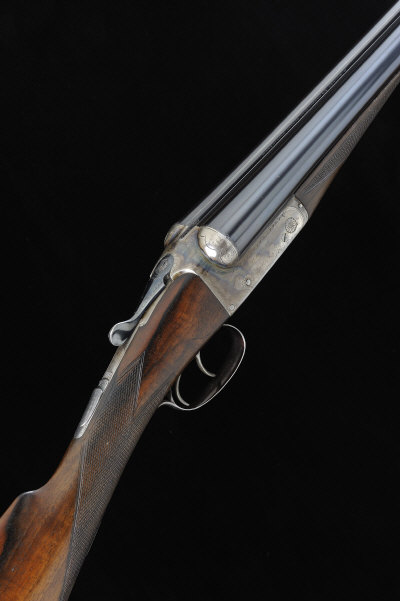 P. KNIGHT A 12-BORE BOXLOCK EJECTOR GUN, NO. 4941 28-inch barrels with 2 1/2-inch chambers, about true cylinder and 1/2 choke borings, crossbolt extension, the frame and top lever with scroll engraving and retaining much original hardening colour, 14 3/4-inch figured stock including rubber recoil pad, 6lb. 7oz., nitro re-proof, rejointing recommended, in its maker's brassbound leather case S2 |