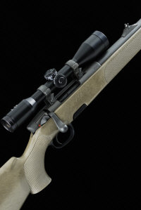 MANNLICHER A .308 MODEL SSG BOLT-ACTION SPORTING RIFLE, NO. 281432 25 1/2-inch barrel with ramp foresight and raised rearsight, the Parkerised receiver mounted with a ZFM 6x42 telescopic sight, bolt with side safety, detachable box magazine, half length plastic stock, 14-inch pull, 10lb. 2oz., Austrian nitro proof, in its maker's case