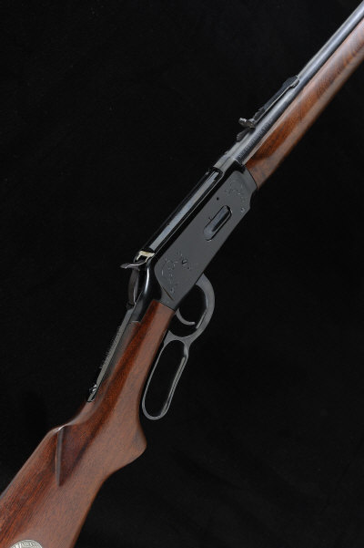 WINCHESTER A .30-30 MODEL 94 NRA CENTENNIAL MODEL COMMEMORATIVE EDITION LEVER ACTION RIFLE, NO. NRA2935612482 24-inch barrel with ramp fore sight, tangent rear sight, half length magazine tube, the frame engraved with the centennial dates 1871 to 1971, saddle ring, 13 1/2-inch figured stock with pistol grip inlaid with commemorative medallion, 6lb. 12oz., Italian nitro proof S1 |