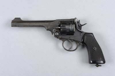 WEBLEY A .455 MARK VI SERVICE REVOLVER, NO. 174787 6-inch barrel, the frame dated 1915, chequered composition grips, nitro proof S5 This lot will not be available for viewing in London. It can be viewed by appointment at our office in West Sussex. |
