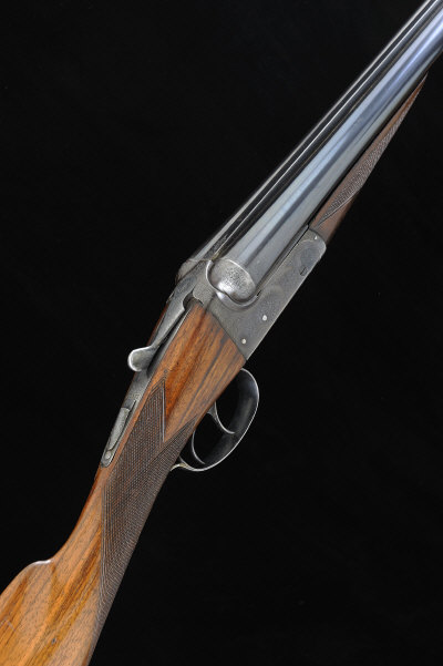 BSA A 12-BORE BOXLOCK EJECTOR GUN, NO. 50203 25-inch replacement barrels with 2 1/2-inch chambers, about 1/4 and full choke borings, the frame and top lever with fine bouquet and scroll engraving, 14 1/4-inch figured stock, 6lb. 8oz., nitro proof, lightweight leather case S2 |