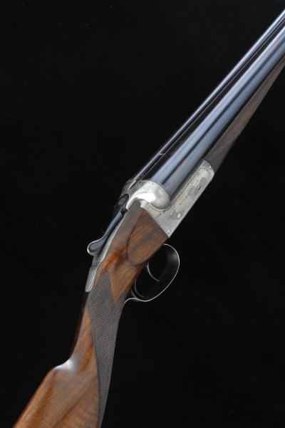 WEBLEY & SCOTT A 12-BORE BOXLOCK EJECTOR CENTRAL VISION GUN, NO. 98852 28-inch barrels with 2 1/2-inch chambers, about improved cylinder and 3/4 choke borings, crossbolt extension, the frame and top lever with scroll engraving and retaining traces of original hardening colour, 14 1/4-inch stock cast-off for central vision, 6lb. 14oz., nitro proof S2 |