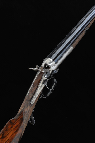 R. WAKEFIELD A .410 HAMMER GUN, NO. 824, CONVERTED FROM A RIFLE 26-inch barrels with 3-inch chambers, about true cylinder borings, machined rib, the rounded frame, non-rebounding back locks, hammers and side lever with scroll engraving, 14 1/2-inch figured stock with steel butt plate, 7lb 10oz., recent nitro re-proof S2 |