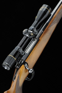 22-inch barrel, the receiver mounted with a Nikko Sterling 6x40 telescopic sight, tang safety, magazine with hinged base plate, half length stock with pistol grip and recoil pad, 13 3/4-inch pull, 8lb. 10oz., nitro proof