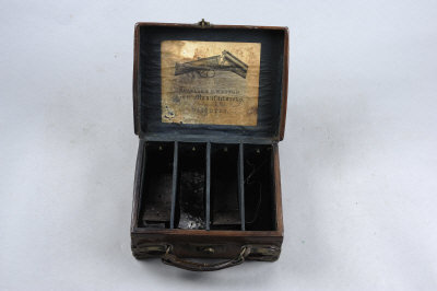 A BRASSBOUND LEATHER CARTRIDGE MAGAZINE