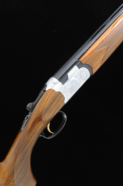 P. BERETTA A 20-BORE 687 "SILVER PIGEON" MODEL SINGLE TRIGGER OVER AND UNDER EJECTOR GUN, NO. N36091B 29 1/2-inch barrels with 3-inch chambers, about 1/4 and 1/2 choke borings, machined ventilated rib, the frame and top lever with game scene and scroll decoration, selective single trigger, 14 1/2-inch figured stock, 6lb. 2oz., Italian nitro proof S2 |