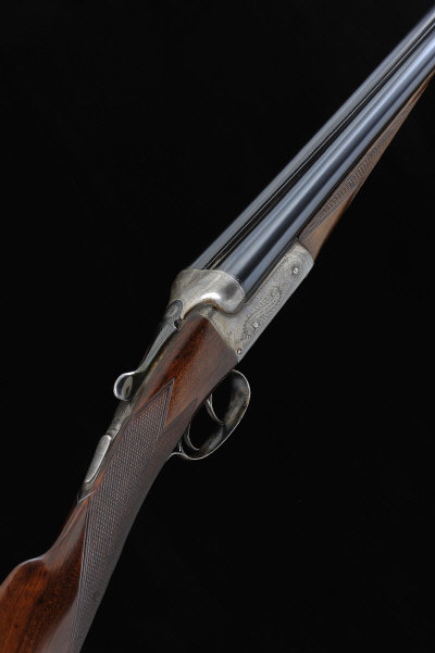 WILLIAMS & POWELL A 20-BORE BOXLOCK NON-EJECTOR GUN, NO. 10747 28-inch barrels with 2 1/2-inch chambers, about true cylinder and 3/4 choke borings, the frame and top lever with border engraving and retaining traces of original hardening colour, the maker's name signed within a scrolling banner, 14 1/4-inch figured stock including 1/4-inch extension, 5lb. 8oz.. nitro proof, right bore marked S2 |