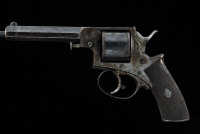 A .38 SOLID FRAME REVOLVER 4 1/2-inch octagonal barrel, solid frame with loading gate and ejector lever, chequered walnut grip, black powder proof