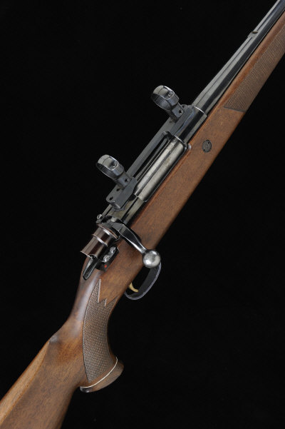 PARKER HALE A .243 BOLT-ACTION SPORTING RIFLE, NO. B08651 24-inch barrel with ramp fore sight, rear sight removed, the receiver mounted with scope rings, bolt with side safety, recoil stud, magazine with hinged base plate, the half length figured stock with pistol grip, cheekpiece and rubber recoil pad, 14-inch pull, 8lb., nitro proof S1 |