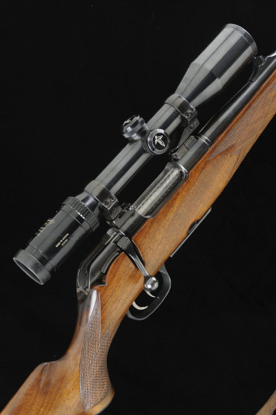 KRICO A .308 BOLT-ACTION STUTZEN SPORTING RIFLE, NO. 136161 22-inch barrel with ramp fore sight and fixed rear sight, the receiver mounted with a Swarovski Habicht 2.2-9x42 telescopic sight in quick detachable swing-off mounts, bolt with side safety, detachable box magazine, double set triggers, the full length stock with pistol grip, cheekpiece and rubber recoil pad, 14-inch pull, sling swivels, 8lb. 12oz., German nitro proof S1 |
