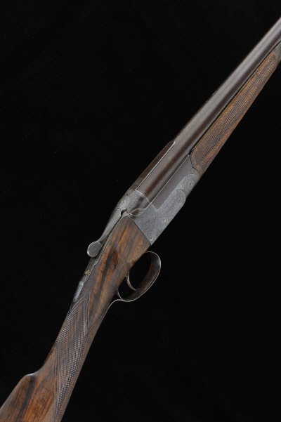 J. WOODWARD & SON A SCARCE SINGLE BARREL 20-BORE BOXLOCK NON-EJECTOR GUN, NO. 4903 27-inch damascus barrel with 2 3/4-inch chamber, about 1/2 choke boring, the frame and top lever with scroll engraving, 14 1/2-inch highly figured stock including 1-inch extension and leather-covered recoil pad, 4lb. 3oz., recent nitro re-proof |