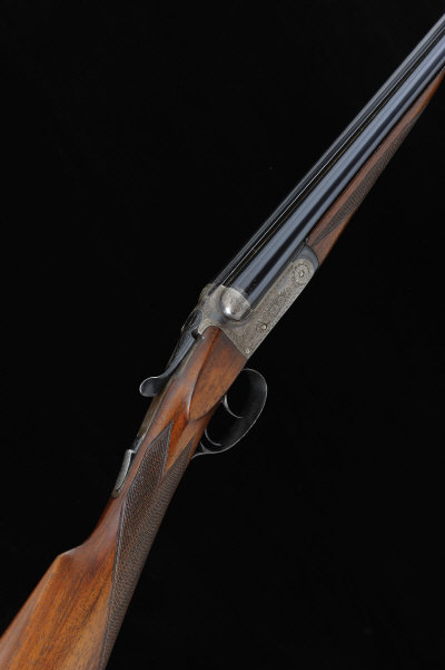 26-inch barrels with 2 1/2-inch chambers, about true cylinder and full choke borings, crossbolt extension, the frame and top lever with scroll engraving and retaining some original hardening colour, 14 1/4-inch figured stock, 4lb. 6oz., nitro proof; together with a Norica .410 bolt-action gun, no. 136123 (2)