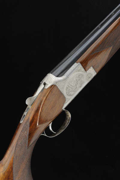 BROWNING A BELGIAN 12-BORE B2G MODEL SINGLE TRIGGER OVER AND UNDER EJECTOR GUN, NO. 325MY03958 30-inch barrels with 3-inch chambers, fitted with Teague interchangeable choke tubes, narrow machined ventilated rib, the frame and top lever with scroll engraving around scenes of duck and pheasant in flight, signed by the engraver "A. Bricante", selective single trigger, 14 1/2-inch well figured stock with pistol grip and maker's butt plate, 7lb. 7oz., Belgian nitro proof, in its maker's leather case with spare chokes, etc S2 |