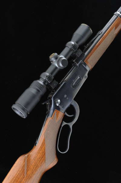 WINCHESTER A .357 MAGNUM MODEL 94AE LEVER-ACTION SPORTING RIFLE, NO. 6288047 24-inch barrel with tangent rear sight, the receiver mounted with a Simmons Whitetail telescopic sight, full length tubular magazine, 13 1/2-inch stock with pistol grip, 8lb. 4oz., nitro proof |