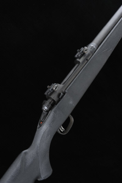 24-inch heavy barrel, the receiver with scope bases, the left-handed bolt with push-forward safety, half length composition stock with pistol grip and recoil pad, 13 1/4-inch pull, 8lb. 12oz., nitro proof