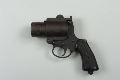 A 1 1/2-INCH NO.4 MK 1 AIRCRAFT VERY PISTOL, NO. 21122 4-inch barrel dated 1943, the frame with chequered composition grips, nitro proof S5 |