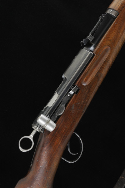 A SWISS 7.5X55 SCHMIDT RUBIN STRAIGHT PULL BOLT-ACTION SERVICE RIFLE, NO. 704601 25-inch barrel with raised fore sight and adjustable tangent rear sight, the receiver with the Swiss cross emblem, magazine missing, the full length stock with hand guard and steel furniture, 13-inch pull, 9lb., nitro proof S1 |
