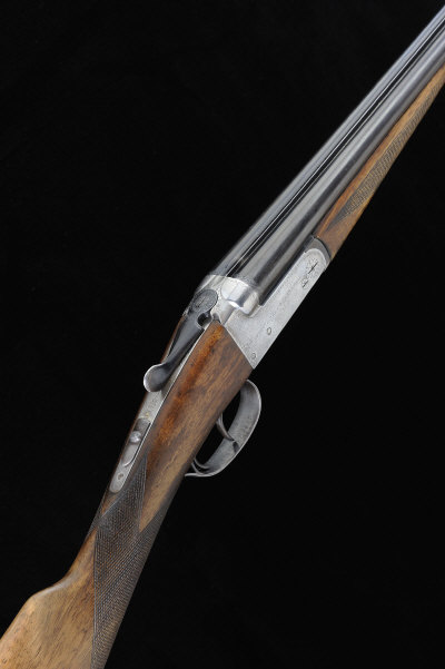 AYA A .410 BOXLOCK NON-EJECTOR GUN, NO. 497641 27-inch chopper-lump barrels with 3-inch chambers, about 1/2 and full choke borings, the frame with border decoration, 14 3/4-inch figured stock, 5lb. 7oz., Spanish nitro proof |
