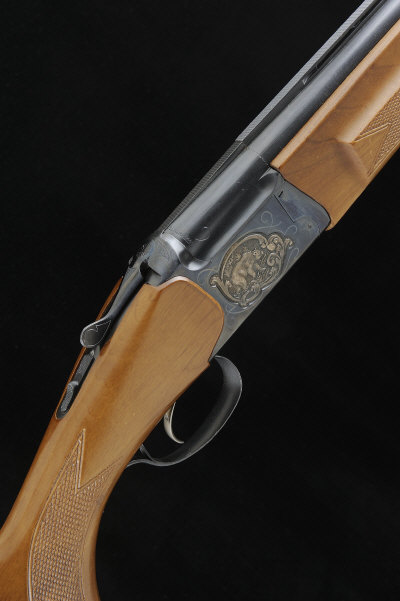 BAIKAL A RUSSIAN 12-BORE SINGLE TRIGGER OVER AND UNDER EJECTOR GUN, NO. 8659822 27 1/2-inch monobloc barrels with 2 3/4-inch chambers, about 1/4 and 1/2 choke borings, machined ventilated rib, the frame and top lever decorated with bear and wild boar scenes, 14-inch figured stock with pistol grip and maker's butt plate, 7lb. 2oz., nitro proof S2 |