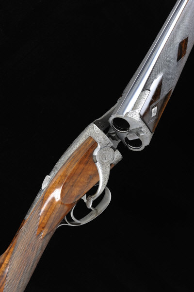 Patented by Theophile Britte in 1931, the "Superbritte" side-opening over and under gun was produced in relatively limited numbers prior to 1939 and it is thought that as few as 250 examples were manufactured. Manufactured by Britte, a renowned supplier to the Belgian trade who counted Lebeau Courally and Aug Francotte as customers, the guns were usually retailed by Jules Bury and by Masquelier, both dealers and manufacturers of high grade arms in Liege.
